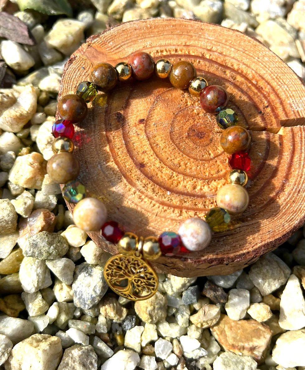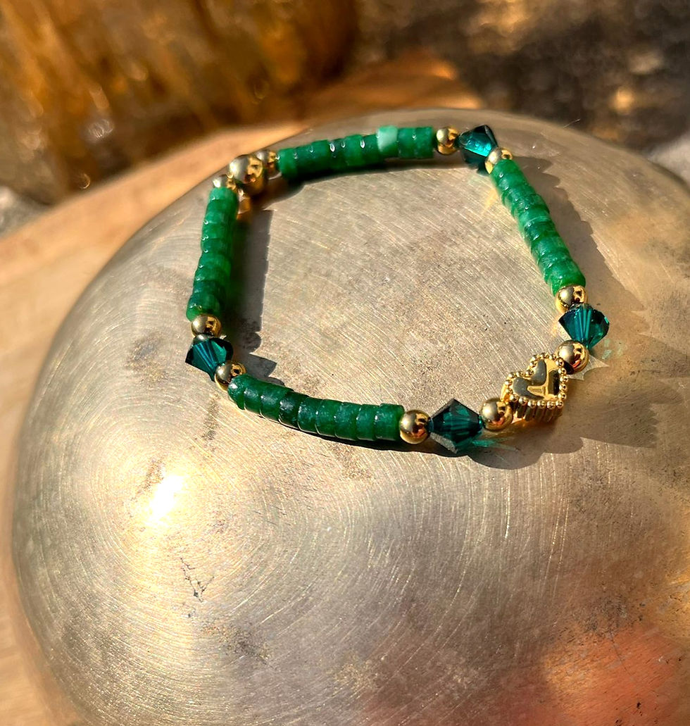 Les bracelets sont confectionnés avec pierres naturelles sélectionnées, cristaux et acier inoxydable doré de qualité. Chaque matériau est choisi pour sa durabilité, sa solidité et sa beauté, afin de créer des pièces à la fois élégantes et résistantes.